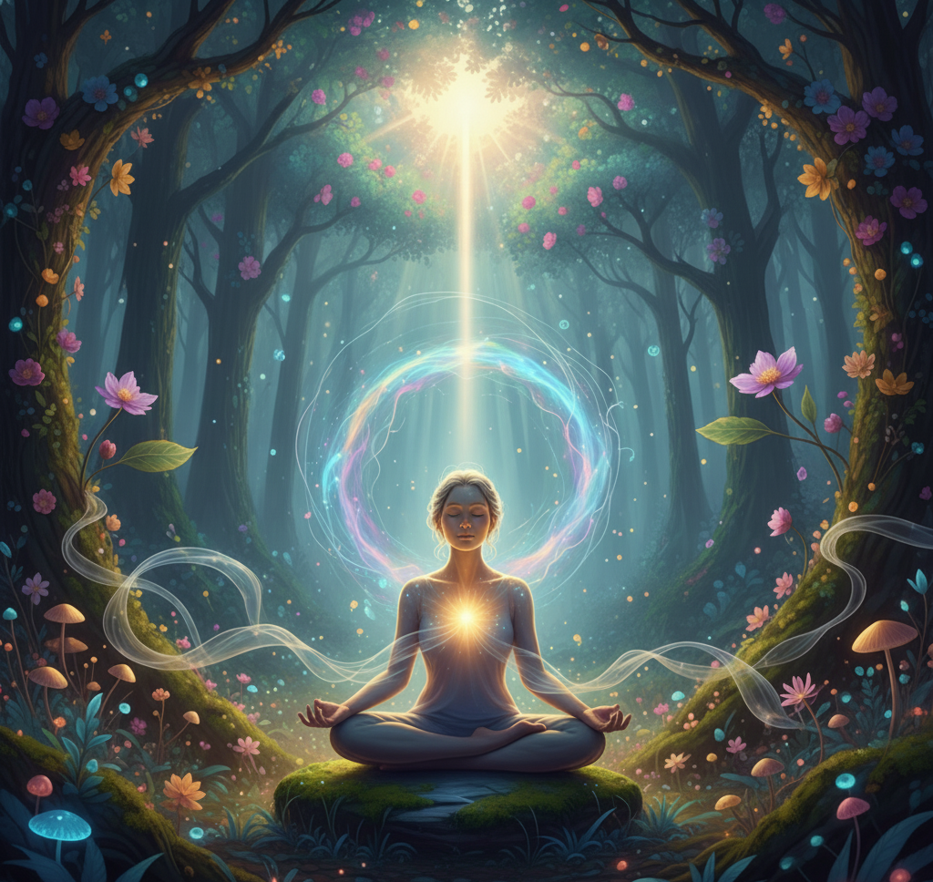 Segundo ciclo: Meditação, Possibilidade e Conexão. No silêncio da meditação, mil caminhos unem-se, e o ser revela-se inteiro.